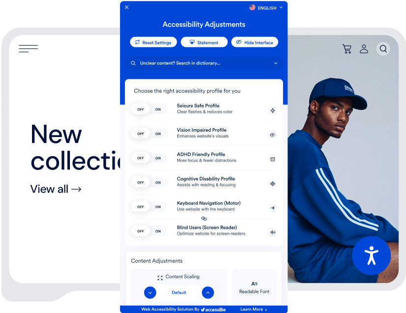 accessWidget is the foundation of your accessibility solution, leveraging advanced AI technology to automatically address common barriers. It’s always on, scanning and fixing your website every 24 hours for compliance.